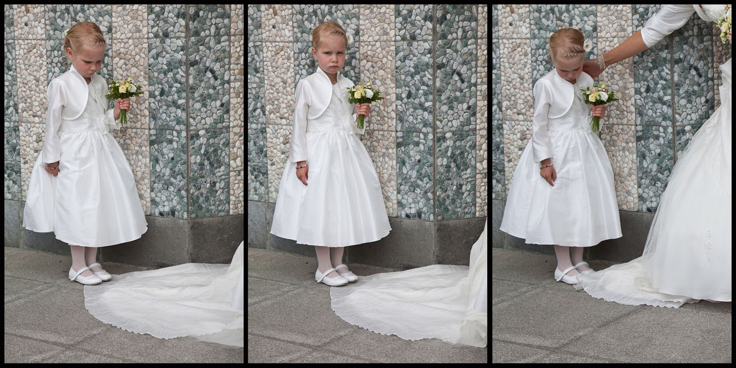 "Morsom serie! Godt poeng med føttene som ”saboterer” brudesløret. God historie. Bra løst fotografisk. Ikke verdens mest spennende belysning, men svært godt sett. Den trøstende hånden lager et fint punktum i handlingen."
